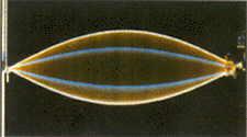 ½ÇÁ¦ÀÇ ÁÙÀÇ Àü»óÆÄÀÇ »çÁø. ¿ÞÂÊÀÌ ¹¿© ÀÖ´Â ÁÙÀÇ ¿À¸¥ÂÊÀ» Áøµ¿½ÃÄ×À» ¶§ ±× Áøµ¿¼ö°¡ Ưº°ÇÑ °æ¿ì ¿ÞÆíÀÇ »çÁø °°ÀÌ °¡¿îµ¥¸¸ÀÌ Å©°Ô Áøµ¿Çϴ ƯÀÌÇÑ ÆÄµ¿ÀÌ µÈ´Ù. ÀÌó·³ °ø°£¿¡ ¸Ó¹«´Â ÆÄµ¿À» Á¤»óÆÄ¶ó ÇÑ´Ù. |